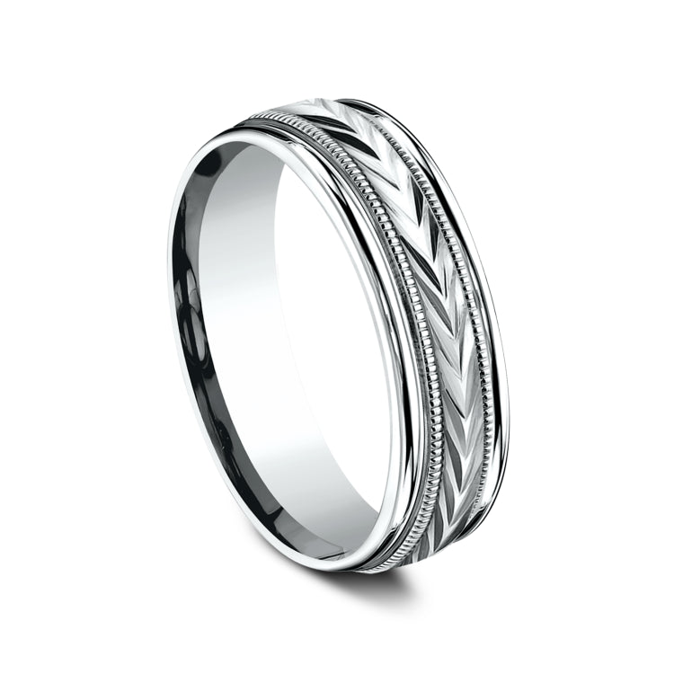 6.5mm, Lightweight comfort fit14K White GoldWheat pattern with milgrain detail, polished round edges