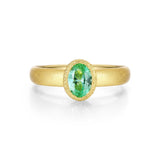 Simple and Trendy. This brushed-finish solitaire ring features a sparkling oval green fancy lab-grown sapphire in sterling silver using Lafonn's exclusive TR Gold, a new and improved plating process that preserves the rich color of gold and enhances the wearability of our gold-plated styles.