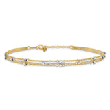 14k Two-tone 3-Strand Chain with Mirror Beads 9 inch Plus 1 inch Extender - Total 10 inch Anklet