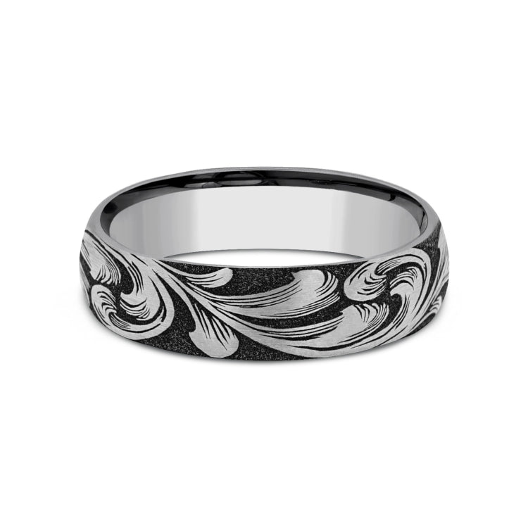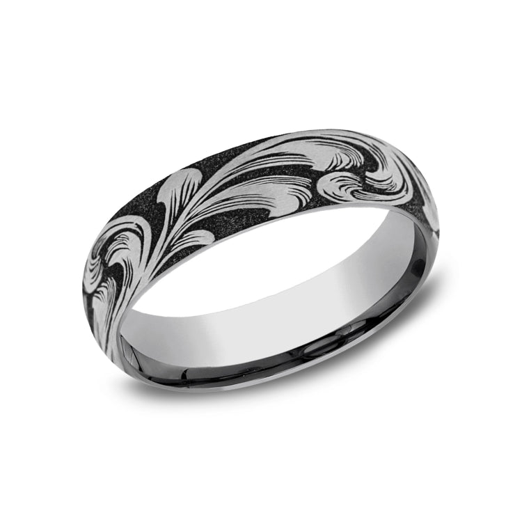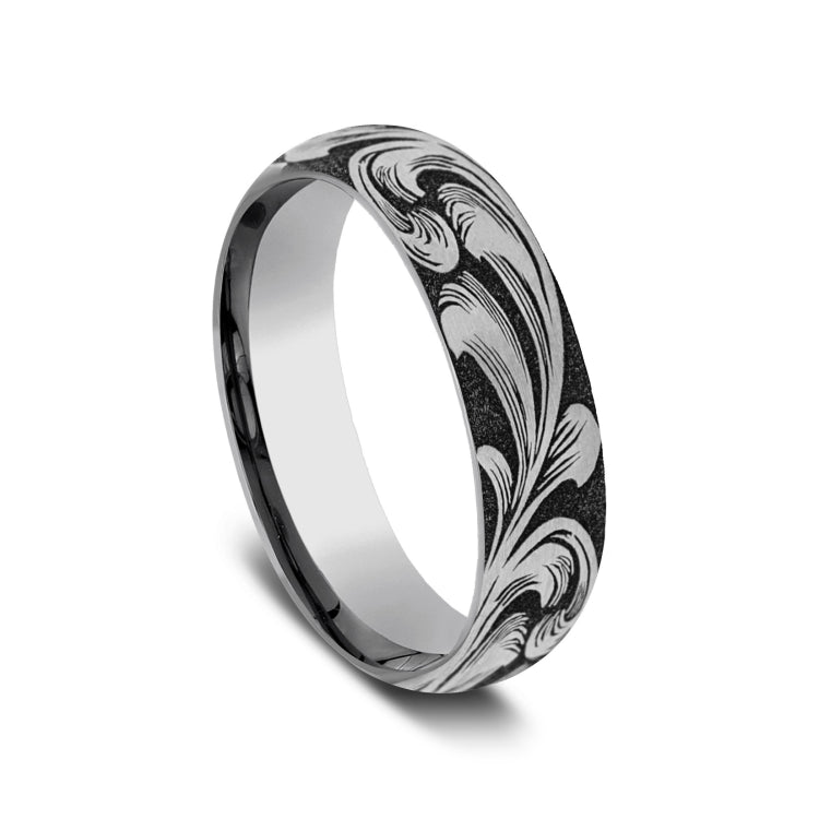 6mm, Comfort fitTungstenLarge barrel script pattern