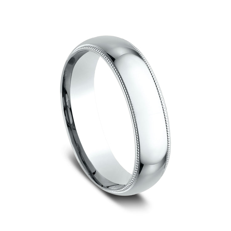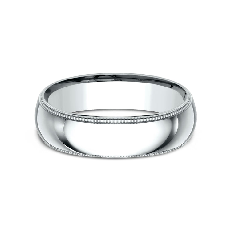 6mm, Comfort fit14K White GoldPolished center, milgrain detailing